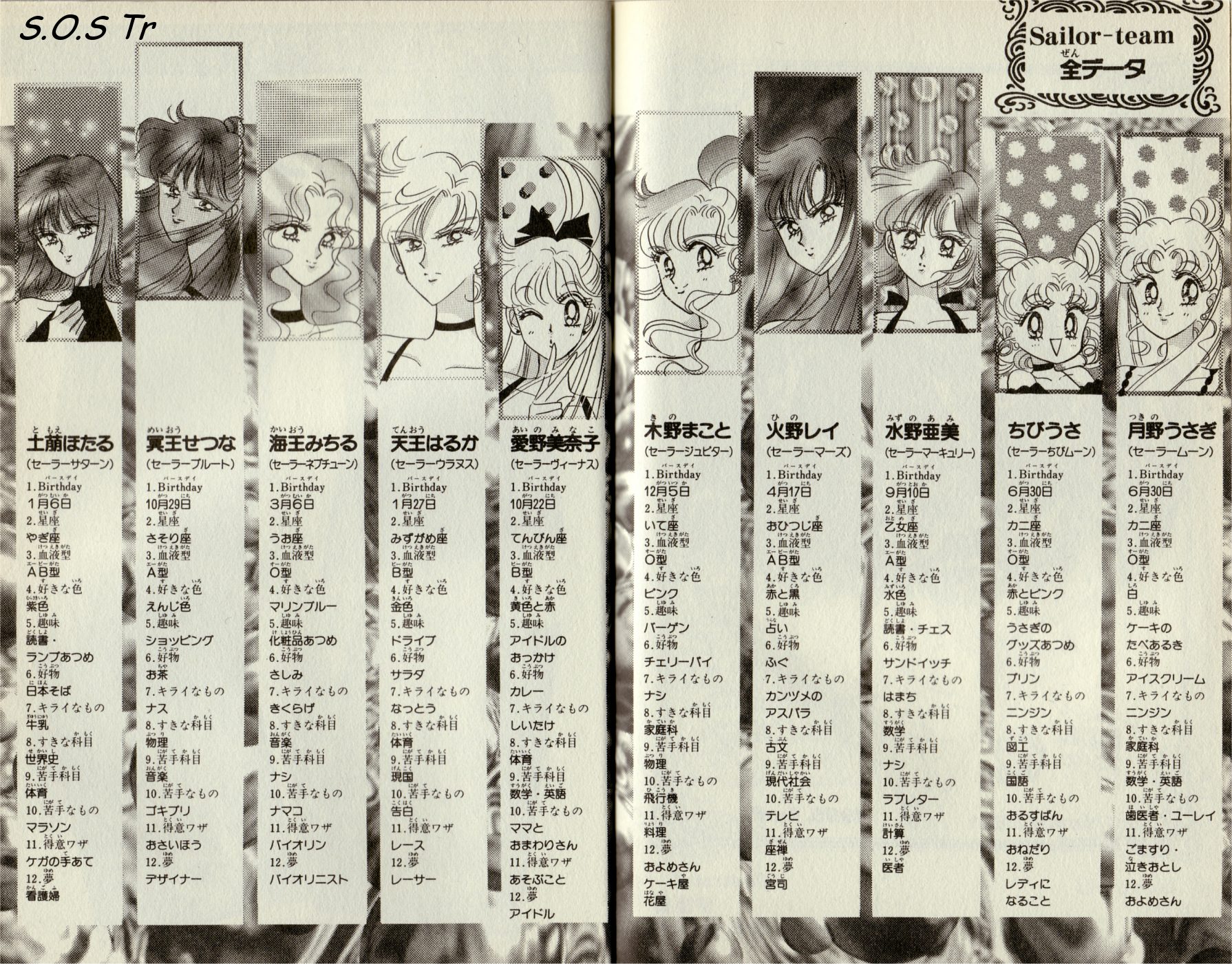 Burada yayınlanan savaşçı karakter profillerindeki bilgilerin çoğu direkt olarak Sailor Moon'un orjinal manga'sından ve Sailor Moon'un yasal sahibi olan şirketlerin hazırladığı anime, kitap, oyunlar gibi resmi kaynaklardan gelmektedir. Bu kaynaklardan önemli bir kısmına kişisel olarak sahip olduğumuz için orjinalleriyle kontrol edilerek yayınlanmıştır. Savaşçıların sırasıyla doğum tarihi, burç, kan grubu, favori rengi, hobileri, favori yemekleri, sevmediği yemekler, okulda favori dersi, en kötü dersi, sorun yaşadığı şeyler, başarılı olduğu şeyler, gelecekteki rüyası bilgilerinin tamamı Naoko Takeuchi tarafından tasarlanmış olup Naoko Takeuchi'nin Japonca orjinal manga'sında 10. cildin sonunda yayınlanmıştır. Merak edenler için ilgili orjinal Japonca sayfayı tarayıp sitemize koyduk. Buraya tıklayarak ulaşabilirsiniz. Taradığımız bu resmi sitenizde yayınlamak isterseniz lütfen mail atıp izin isteyin. Bunların dışında, favori hayvan bilgisi Sailor Moon'un resmi oyuncaklarında belirtilmiştir. Uğurlu taşı bilgisi Sailor Moon'un resmi Super Famicom roleplaying oyununda belirtilmiştir. Boy bilgisi olarak Sailor Moon'un boyu Sailor Moon'un resmi karakter tanıtım kitapçığında açık olarak belirtilmiştir. Sailor Pluto'nun boyu ise Sailor Moon S Movie Memorial Album'de açıkca belirtilmiştir. Ama diğer karakterlerin boyları hakkında resmi bir açıklama olmadığından internette Sailor Moon karakterlerinin boyları hakkındaki bilgilerde farklılıklar bulunmaktadır. Bu farklılığın nedeni ise boy bilgilerinin temel olarak Kyle Pope ve Mark MacKinnon adlı iki uzmanın bağımsız çalışmalar sonucu yaptıkları çıkarımlardaki ufak farklılıklar ve farklı sitelerin genelde bu iki araştırmadan birisini referans alıp kullanmasıdır. Kullanılan çıkarım yöntemi ise diğer karakterlerin resmi çizimlerinin, gerçek boyu tam olarak olan bilinmekte olan Sailor Moon'un çizimlerine orantılanmasıdır. Anime News Network yazarlarından birisi olan Kyle Pope bu oranlamayı Sailor Moon Nakayoshi Anime Albümü'nün 1. cildinin 103. sayfası ve 2. cildinin 94. ve 111. sayfalarındaki resmi karakter çizimlerini kullanarak yapmıştır. Sonuçlar Sailor Moon hakkında en önemli bilgi kaynaklarından olan Ken Arromdee'nin Sailor Moon FAQ adlı bilgi arşivinde yayınlanmıştır. Boy bilgileri hakkındaki diğer kaynak ise Sailor Moon hakkındaki en önemli bilgi kaynaklarından olan ve Sailor Moon RPG oyunları hazırlayıp oynayanların temel kaynak olarak kullandıkları Mark MacKinnon'ın Sailor Moon Role-Playing Game and Resource Book adlı kitabıdır. Mark MacKinnon farklı bir resim seti kullandığı için kendi sonuçları ile Kyle Pope'ın sonuçları arasında bazı karakterlerde çok ufak farklar bulunmaktadır. Biz karakter tanıtımlarında Sailor Moon ve Pluton dışındaki resmi olarak boyu bilinmeyen şavaşçılar için bu iki temel kaynak arasından Mark MacKinnon'ın Sailor Moon Role-Playing Game and Resource Book adlı kitabındaki boy bilgilerini referans alıp yayınladık. Savaşçılar hakkındaki bunların dışındaki genel bilgiler ise yine resmi karakter tanıtım kitapçıkları, Sailor Moon Role-Playing Game kitabı, anime, orjinal manga gibi kaynaklardan ve internetteki temel kaynaklardan gelmektedir. Diğer karakterlerin profillerinde başka sitelerden de çeviri yapılmış ve kaynaklar sayfalarda belirtilmiştir.